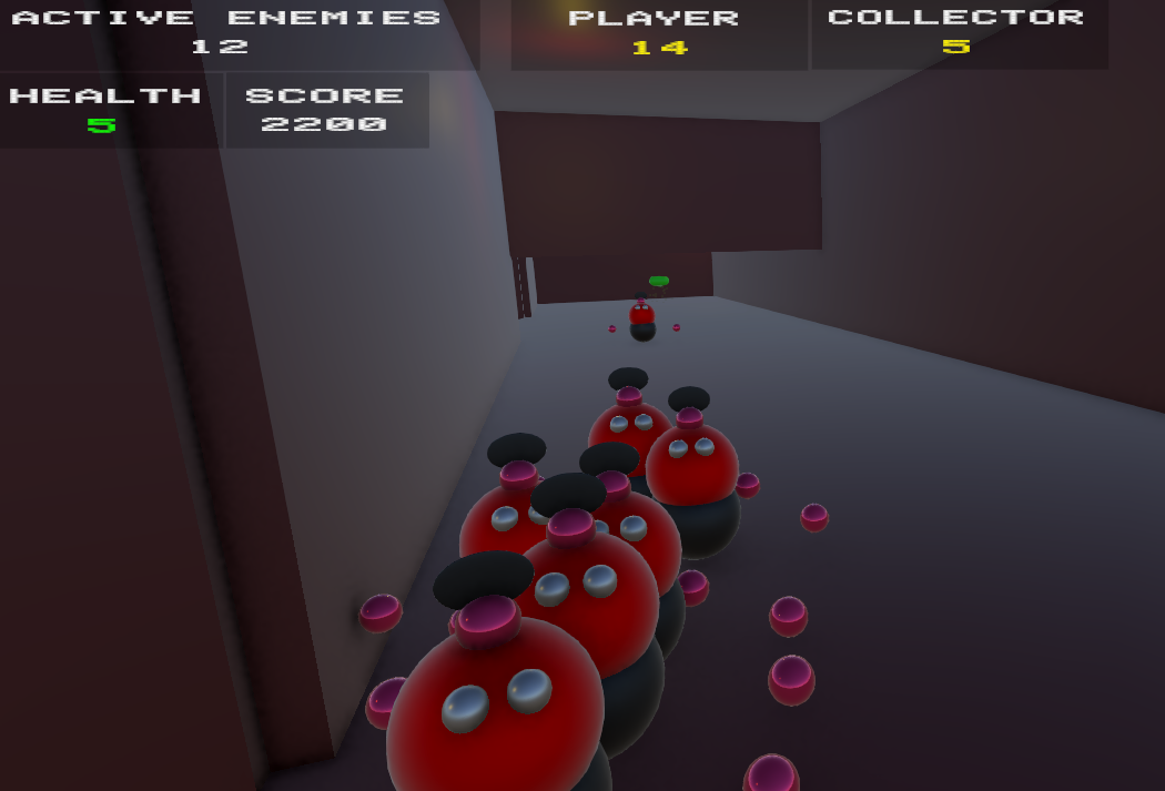 Sobrevive lo máximo posible en esta frenética experiencia mientras derrotas enemigos para sumar puntos y recolectas monedas para ganar al recolector (este es invencible). Hay píldoras curativas por el mapa que te restaurarán al máximo de salud.