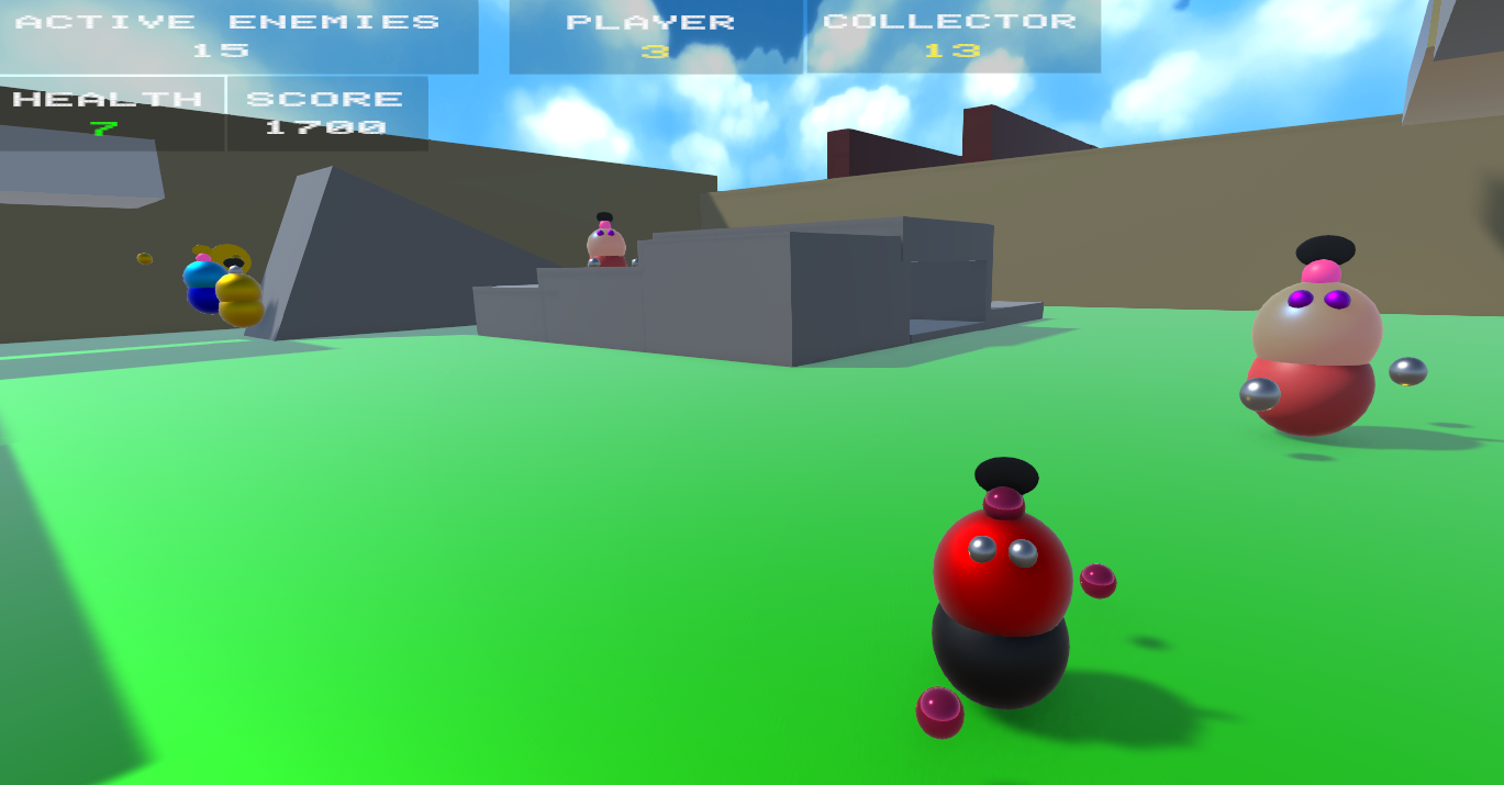 ¡CUIDADO, porque perder toda tu salud no es la única forma de que ocurra un fin de la partida! No te descuides con el número de enemigos en el mapa o la ventaja que te lleve el recolector. Si la cantidad de enemigos activos alcanza los 20, perderás. Si el recolector te lleva una ventaja de más de 10 monedas, perderás. ¡No te descuides ni un segundo!